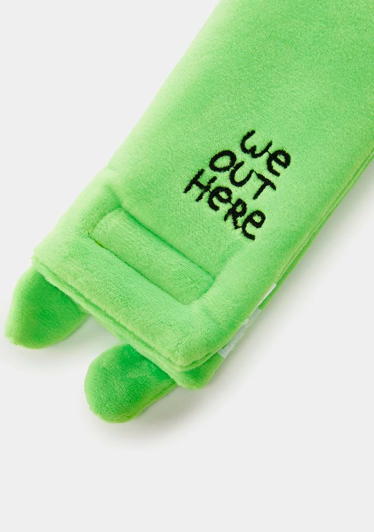 protect yourself from extraterrestrial beings. This seat belt cover comes in a plush construction, with graphic details, and a velcro closure.