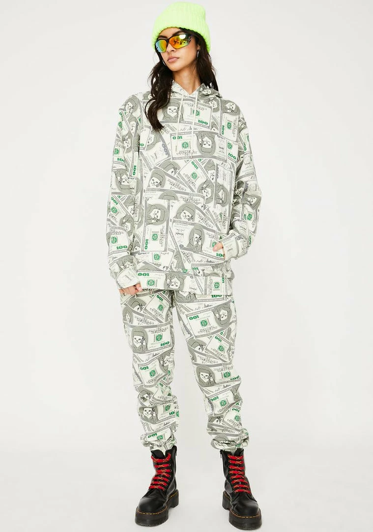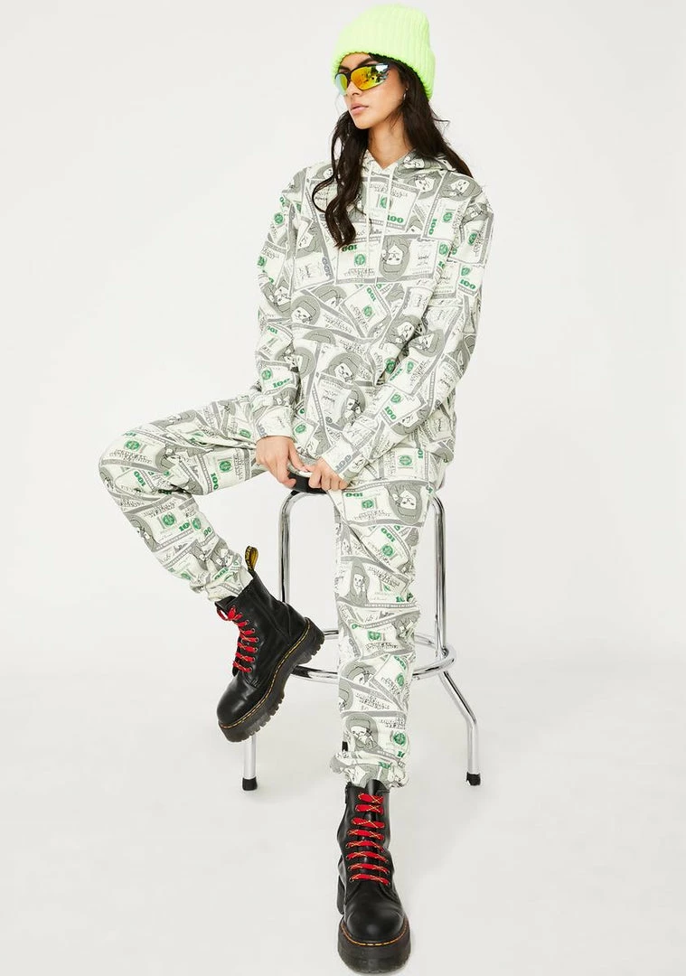 they started hatinΓ’ΒΒ now they love yer drip. Talk cash ish in these high waist jogger sweatpants that have sikk money print all ova, adjustable drawstring closure NΓ’ΒΒ classic pockets.