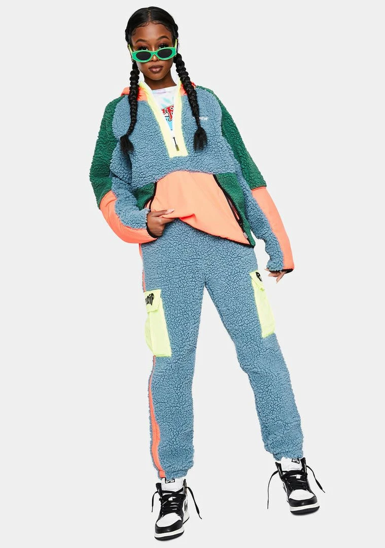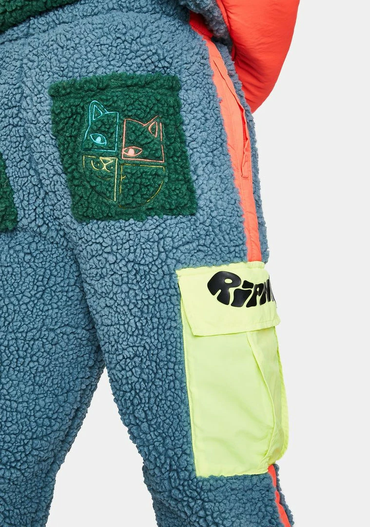 cuz ur picking all the battles. Ur ready to rally in these fleece joggers with a colorblock design with nylon panels, ripndip logos on the side pockets, and nerm embroidery on back.