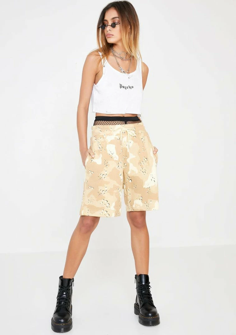cuz you couldnรขยยt blend in if you tried, sis! Stand out in these dope AF shorts that have a drawstring elastic waist, hip Nรขยย back pockets, and sikk camo graphic print all ova!