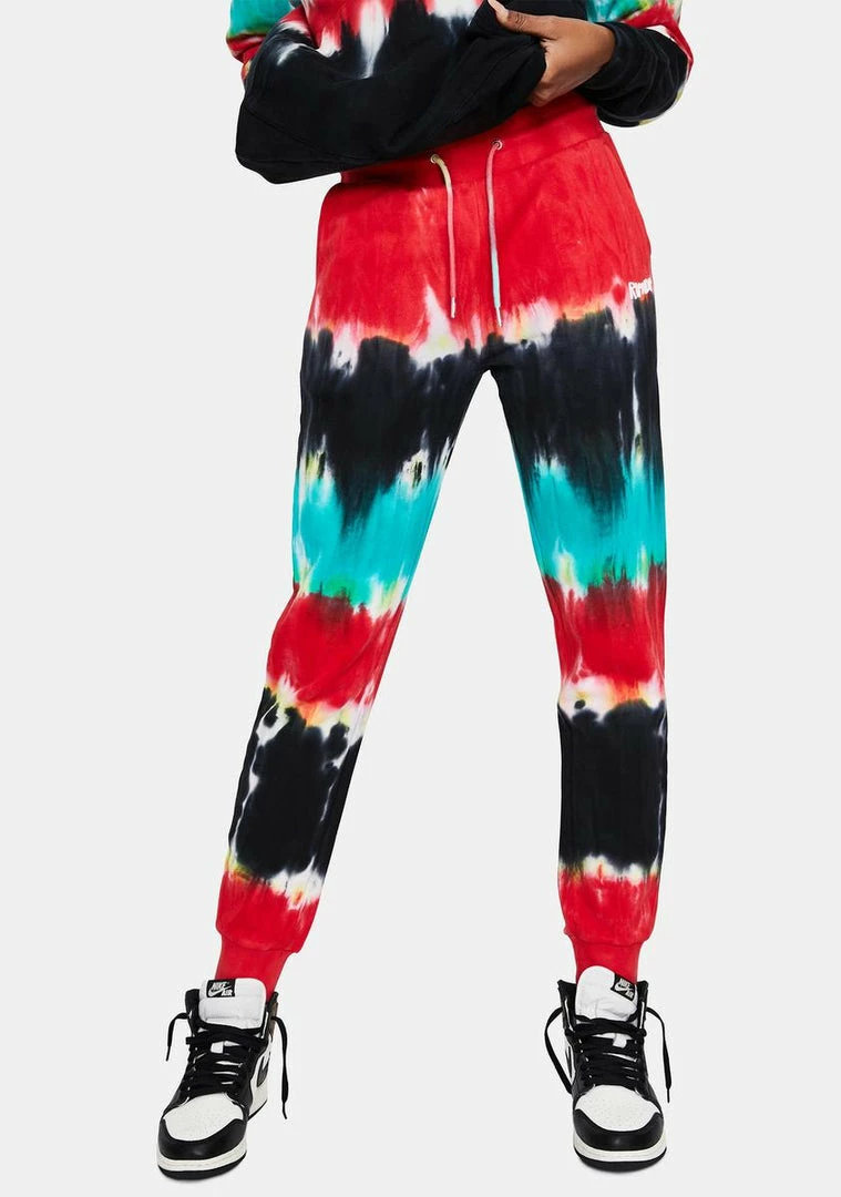 cuz ur reaching new heights. Looking at u in these essential sweatpants with a tie dye print all over, elastic drawstring waist, and embroidered nerm peeking out of the back pocket.
