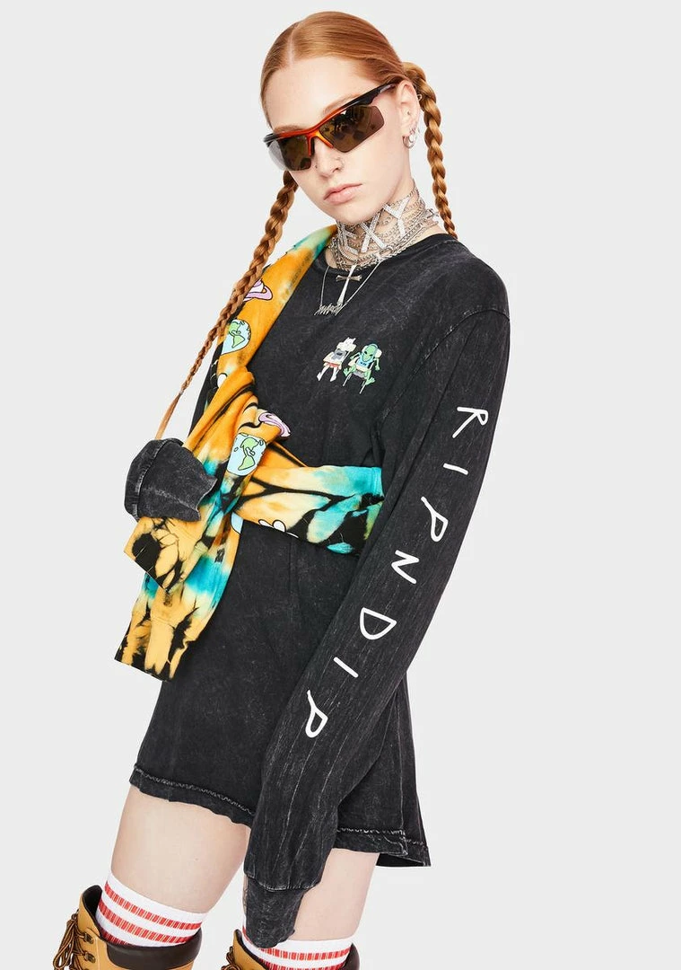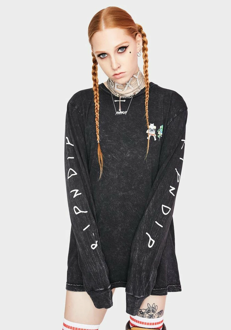 because ur sassy nรขยย assy. Clown on รขยยem in this mineral wash long sleeve tee with a screen printed graphic on the back, mini graphic on the chest, and brand logo on both arms.