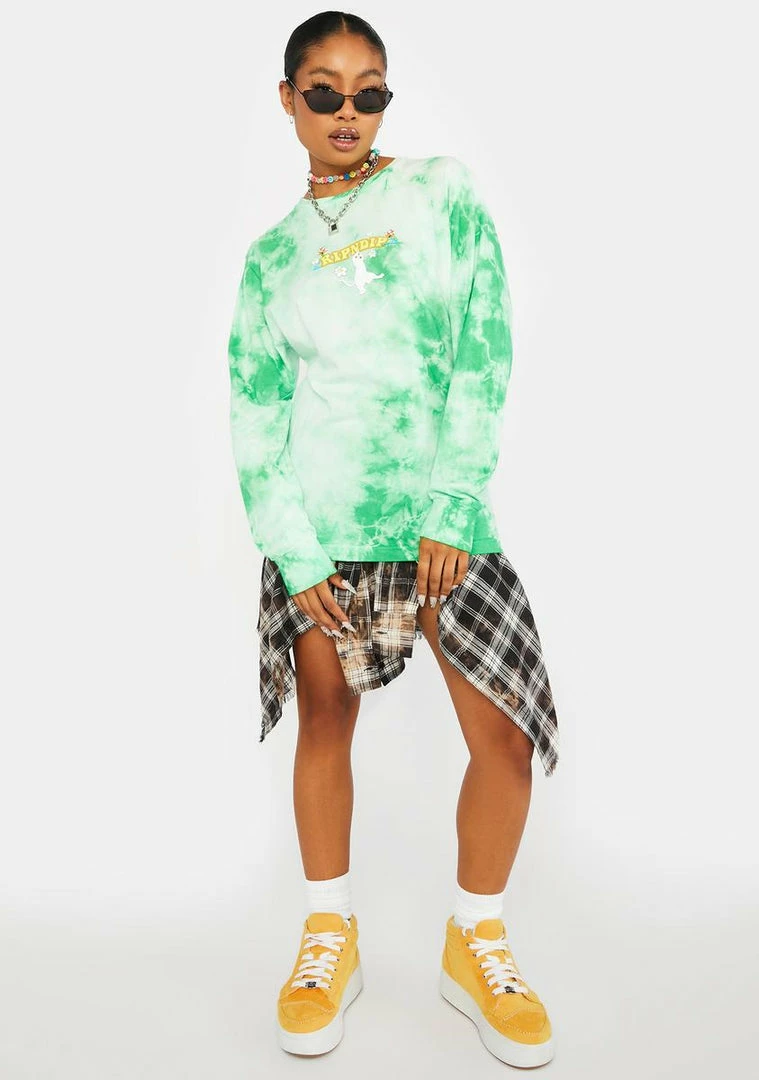 cuz it’s better than cloud nine. This tie dye long sleeve tee has graphics on the front and back.