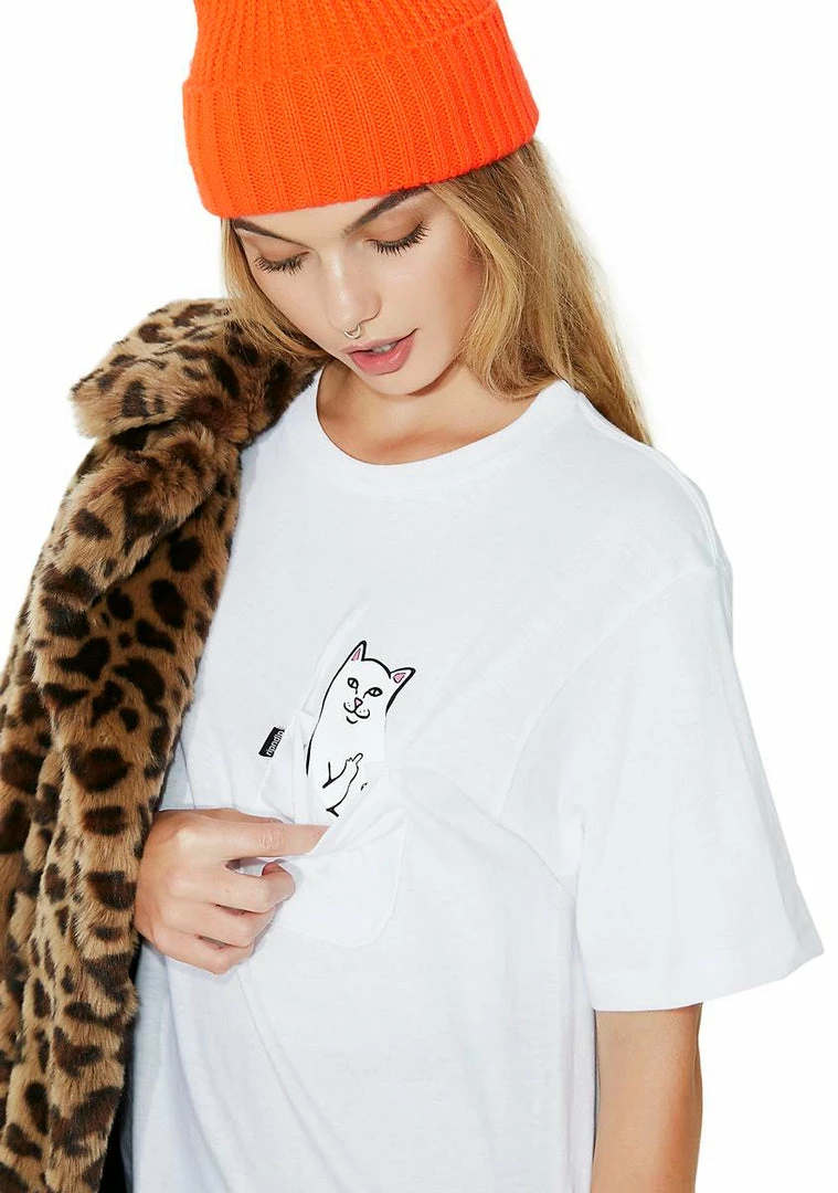wants u to come out n play, kitten. This dope graphic tee has a relaxed fit and a pocket detail with a hidden design of Lord Nermal inside flippin’ the bird.