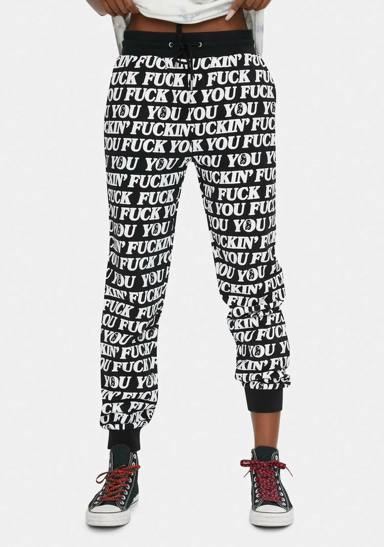 cuz people need to mind their business. These joggers have the phrase f you on it.