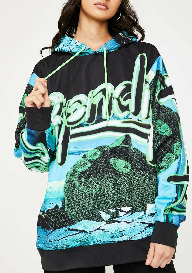 got ya takinΓ’ΒΒ the trip of a lifetime! Time is on yer side in this dope AF pullover hoodie that has rad futuristic graphics all ova, adjustable drawstrings and a relaxxxed fit.