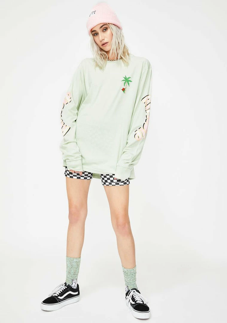 gotcha stickinΓ’ΒΒ around for one thing only, babe. Ya luv a good time in this dope AF long sleeve tee that has steamy hot tub graphics on the back NΓ’ΒΒ front, a crew neckline and relaxed fit.