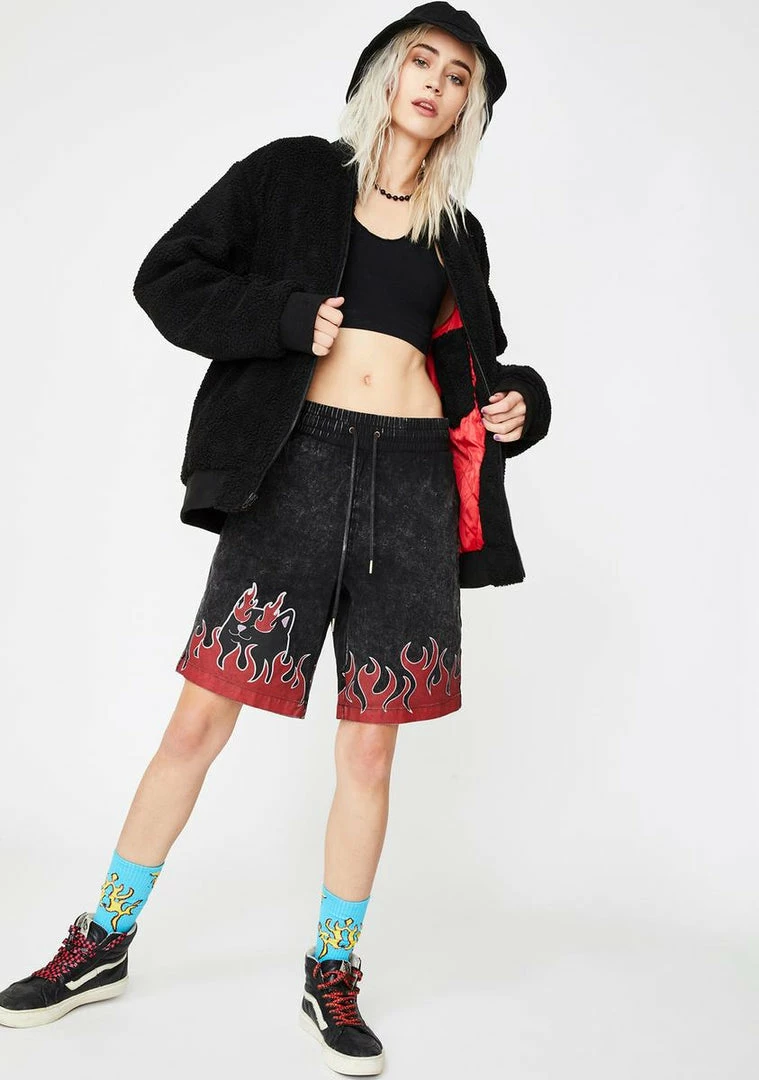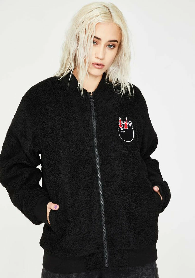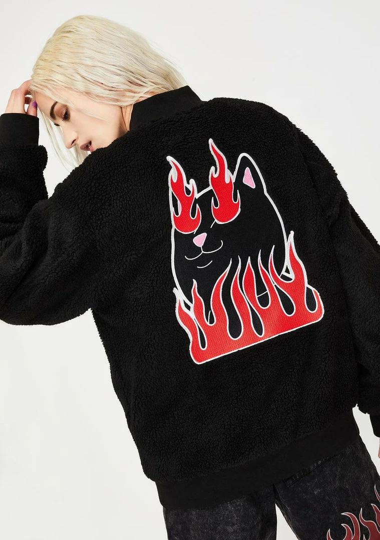 got their heartz on fire! Burn it down in this sikk sherpa jacket that has flaminâ Nerm cat graphics on the back Nâ front, side pockets and a front zip closure.