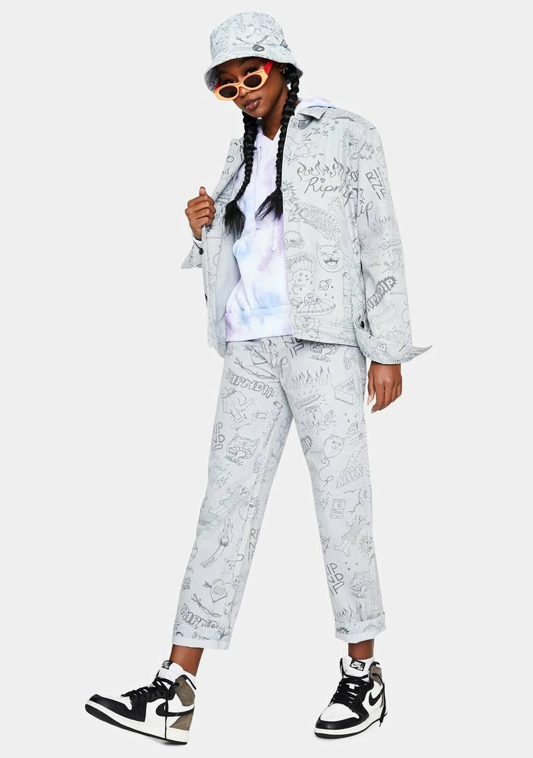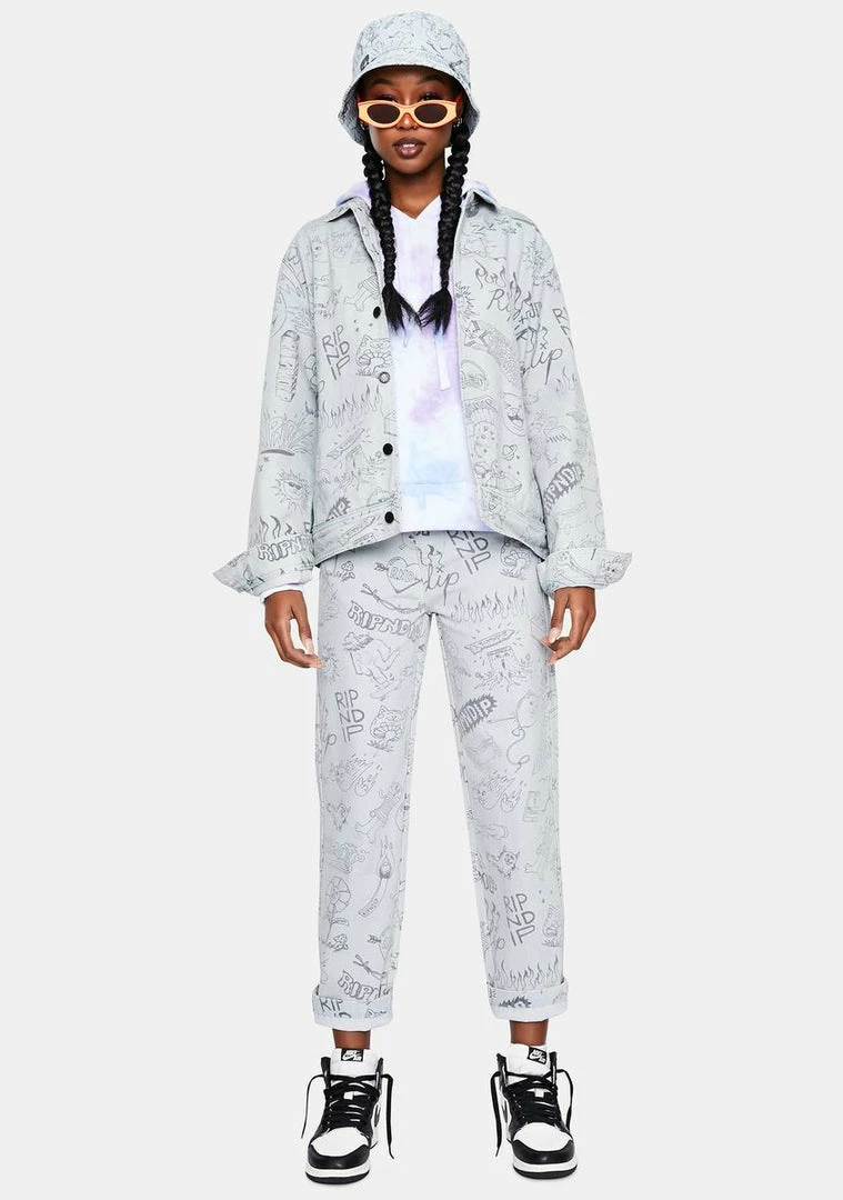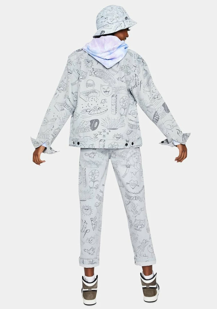 cuz ur my doodle bae. These light wash jeans have a doodle nerm and ripndip logo print all over and straight leg fit.