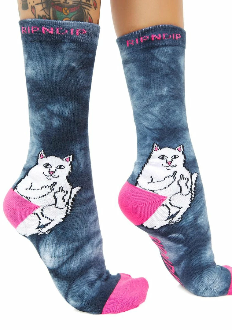 for those donΓ’ΒΒt fu*k with me daze. These crew socks features an acid wash design, Lord Nermal flicking you off, and a contrasting cushioned heel and toe box.