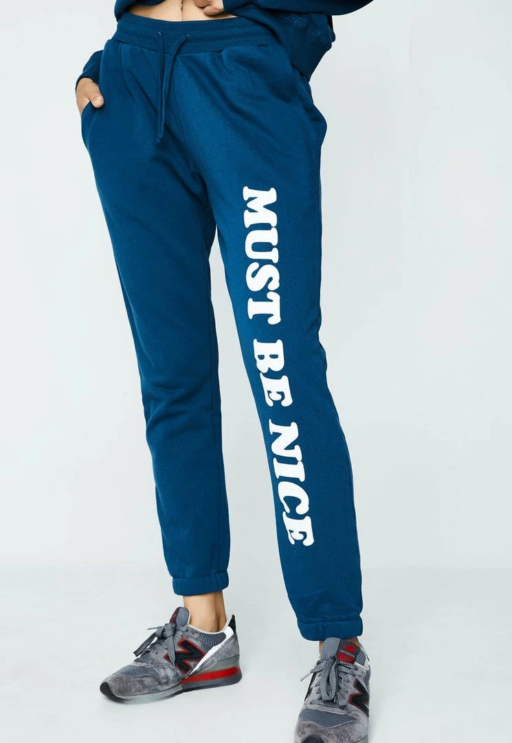 cuz you just chillen bb. These sweatpants say MUST BE NICE on the side, have pockets and the sides and an elastic waistband.
