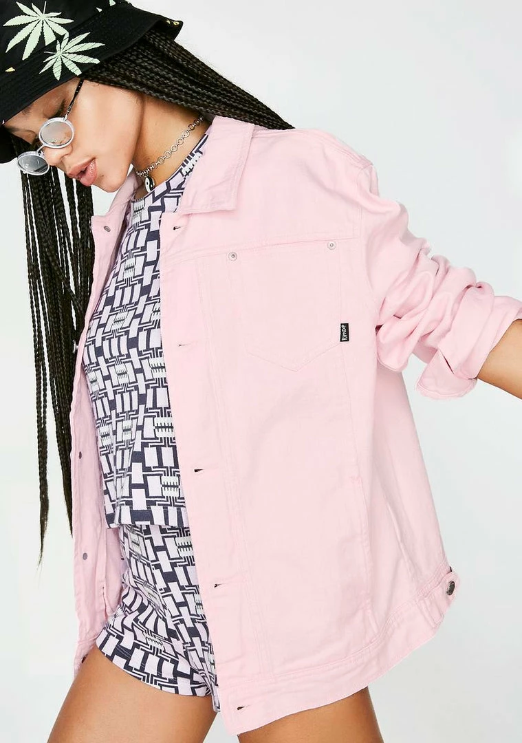 cuz Nermal got a sweet side. Be pretty in pink with this oversized denim jacket that has Nermal with flowers on the back, pockets on the front and a button closure.