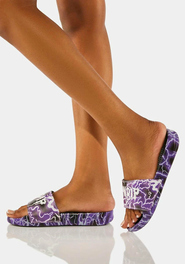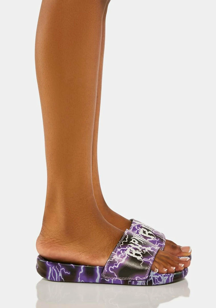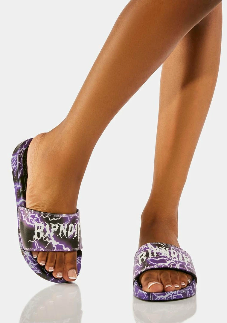 cuz you’re a bolt of lightning. These slides have a logo lightning graphic, a comfy footbed, and a padded toe strap.
