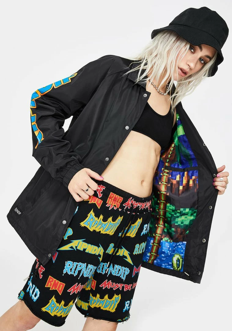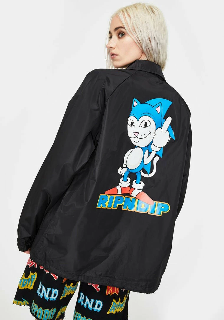 gotcha goinâ sonic speed ahead! Youâre always number one in this dope AF coach jacket that has sikk Nerm graphics, pockets on the front, a printed lining Nâ snap button closures.