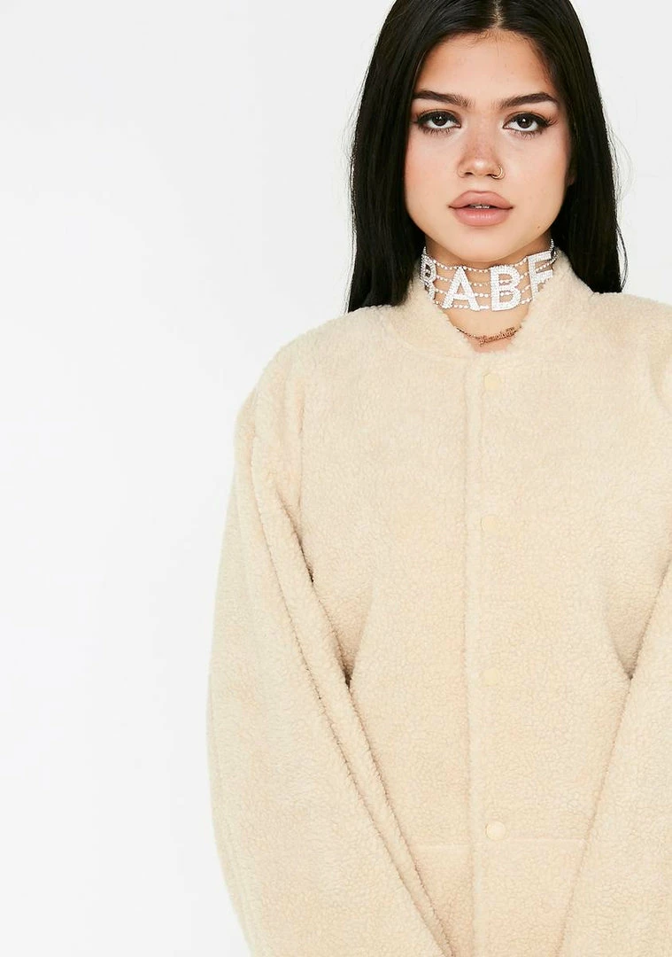 will keep ya chilled TF out. Take a dose of dopeness in this sikk Nรขยย fuzzy jacket that has a front button up closure, pockets, and a chill pill back patch.