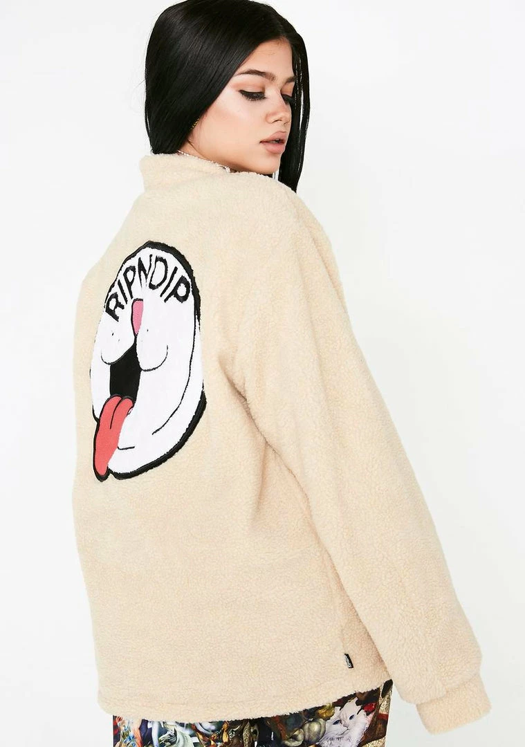 Buy ๐คฉ RIPNDIP Outerwear Pill Sherpa Varsity Jacket ๐