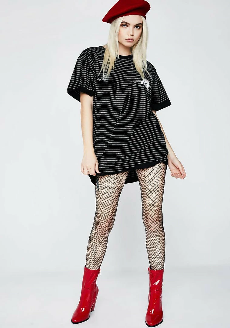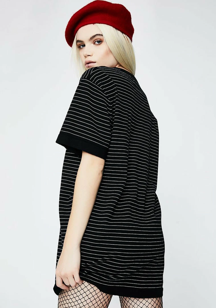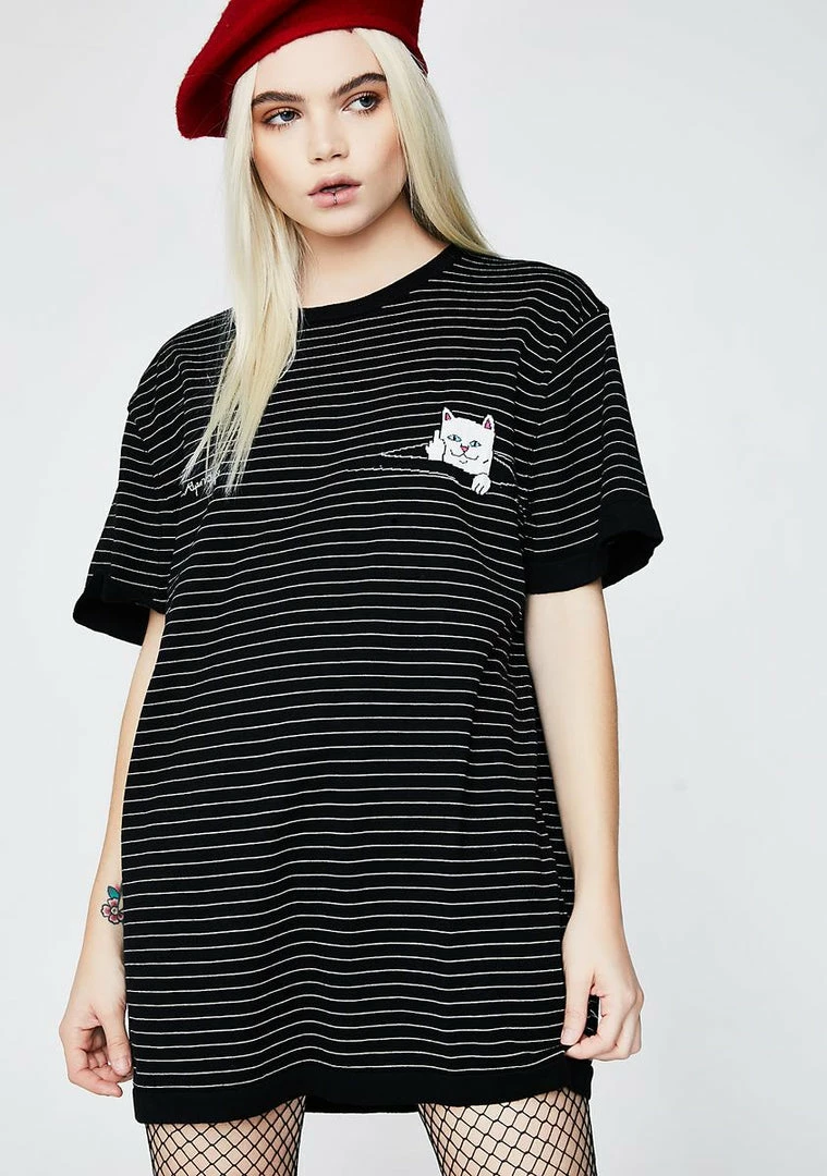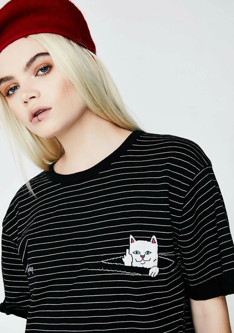 cuz Nermal ainΓ’ΒΒt into meeting other people. This jacquard tee has Nermal inside a pocket and a stripe pattern all ova.