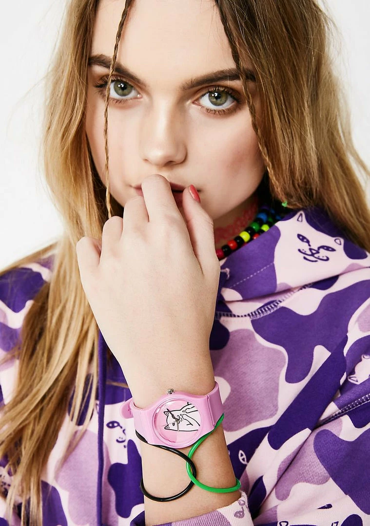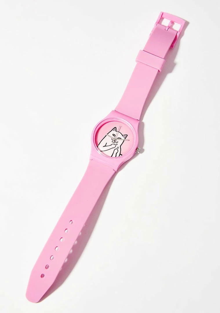 cuz itΓ’ΒΒs about fukkinΓ’ΒΒ time, kitten! This sik plastic watch features a sleek pink design with a simple strap and bezel thatΓ’ΒΒs encased with Nermal. The best part is that this bb has no numbers so yew can still run late if ya want to and blame it on da time.