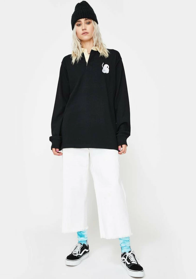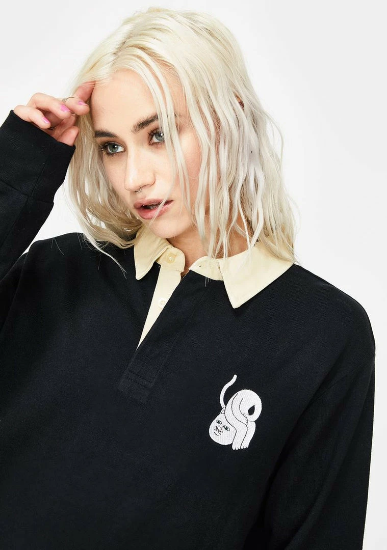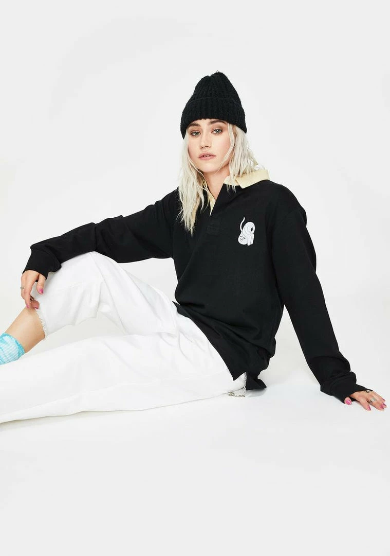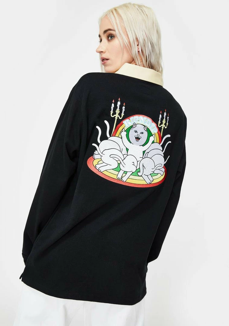 cuz you donΓ’ΒΒt bow down for anyone! YouΓ’ΒΒre your own queen in this long sleeve polo tee that has a contrast colored neckline, button closures, a relaxed fit NΓ’ΒΒ sikk Nerm graphics.