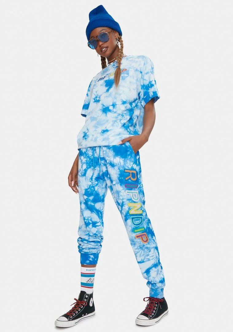 cuz you keep it chill. These sweatpants have a tie dye print and nerm logo.