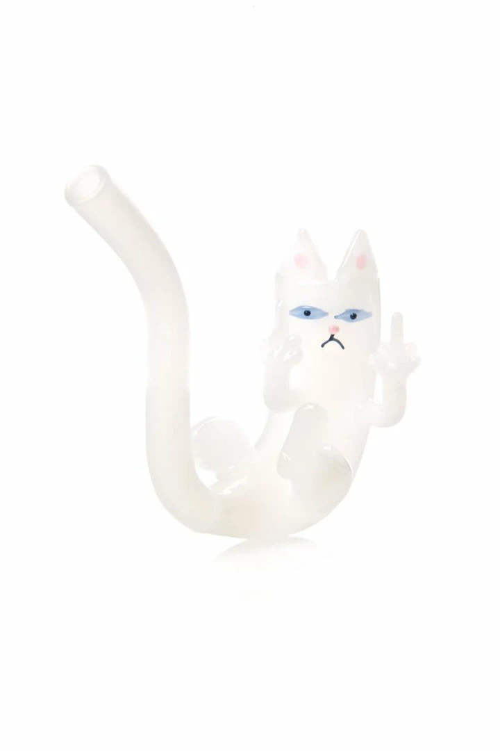 …smokinâ grass outta a catâs azz? Sure, whatever. This dope hand-blown glass pipe features a jerky fuckinâ Nermal flippinâ ya off double time. Load up his head with yr favorite strain and light up or shut up.