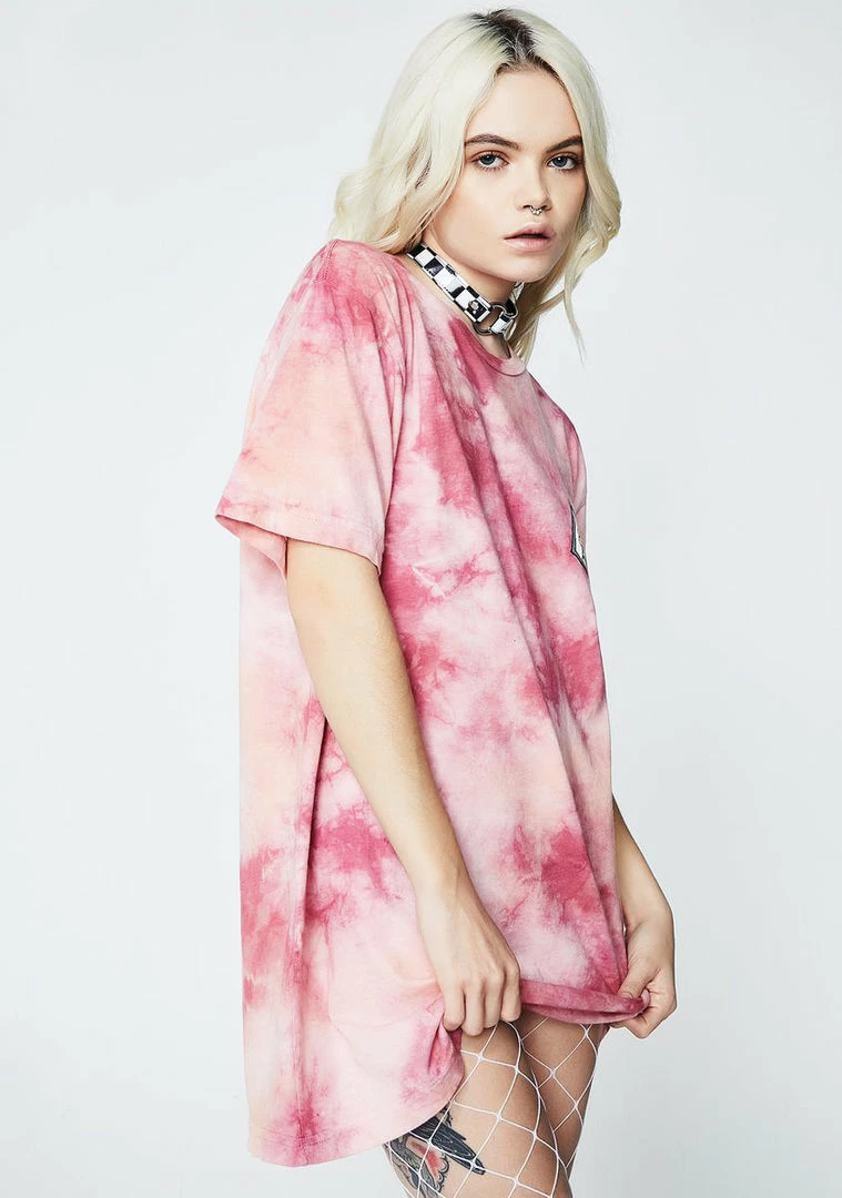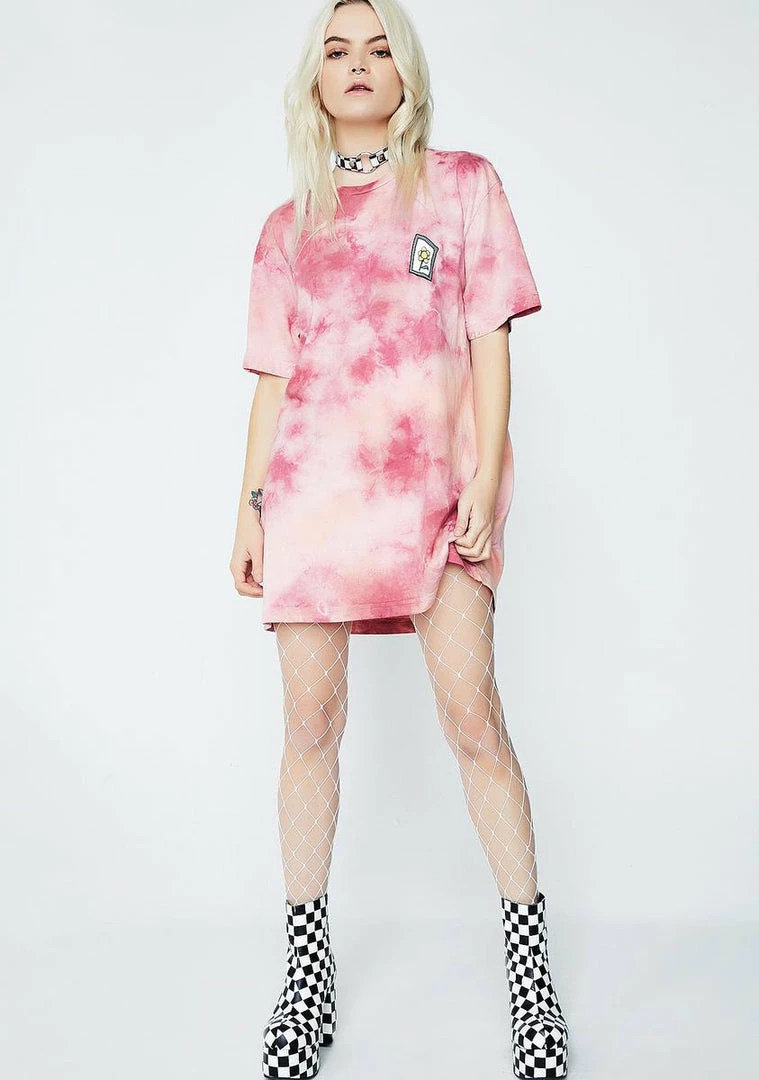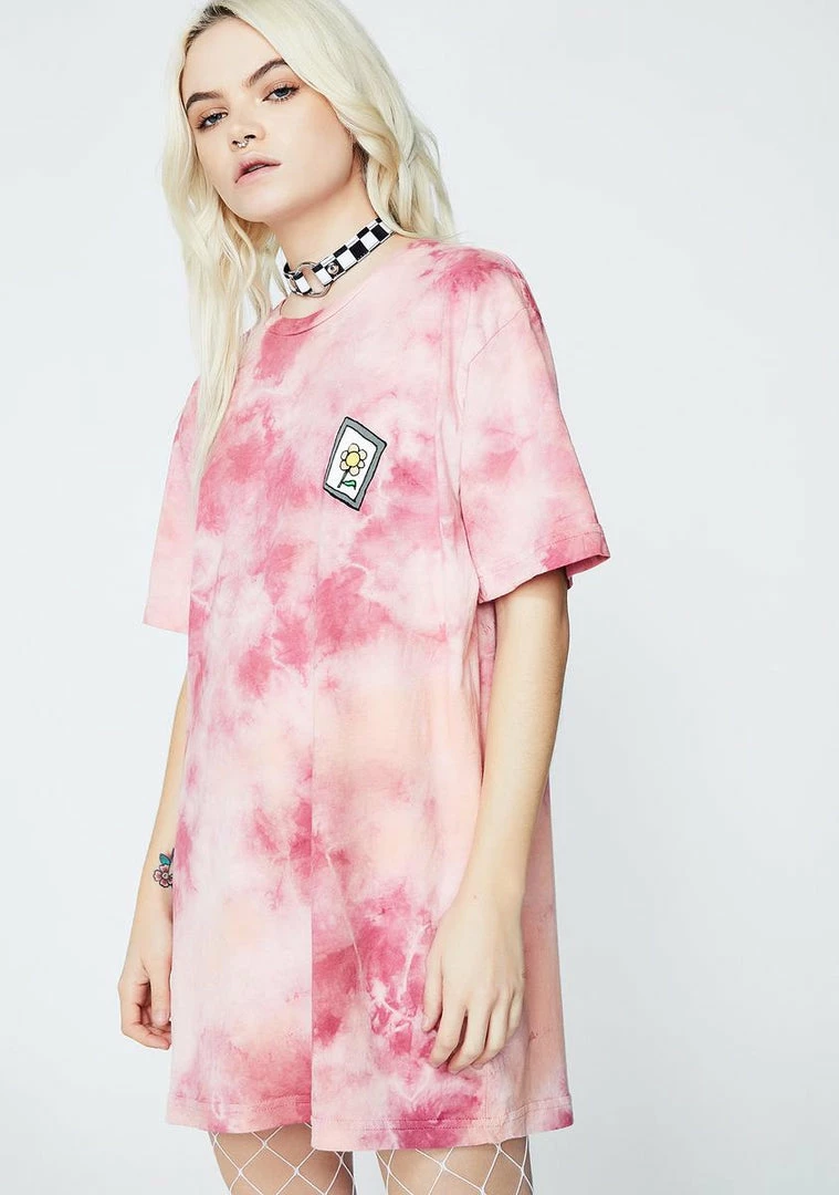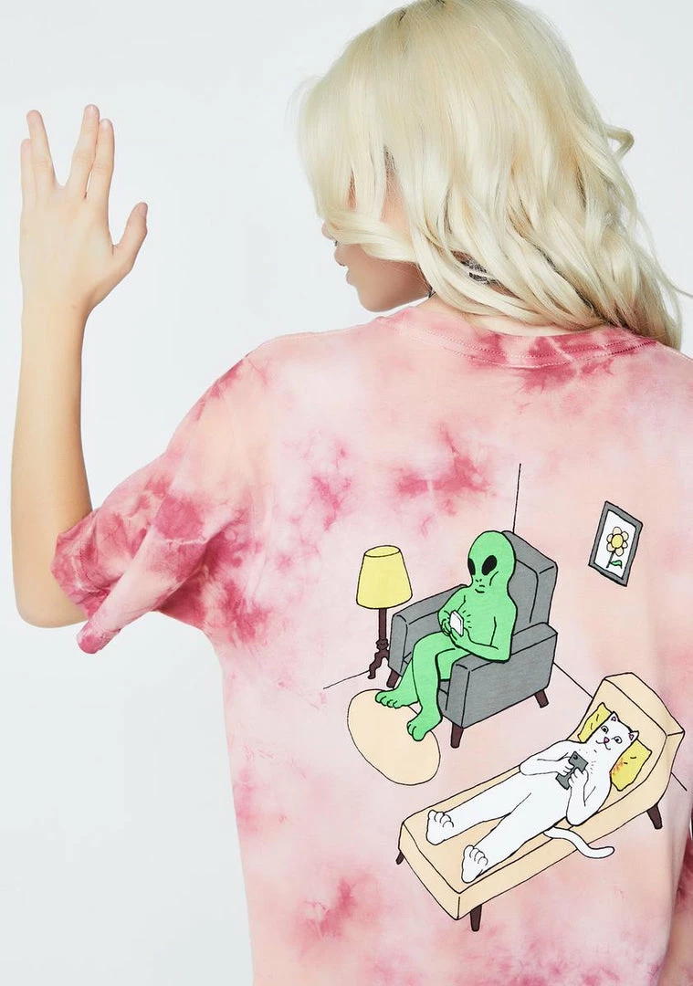 cuz you want to let it all out. This tie dye tee has a graphic of Nermal having a therapy session on the back and a floral graphic on the front.