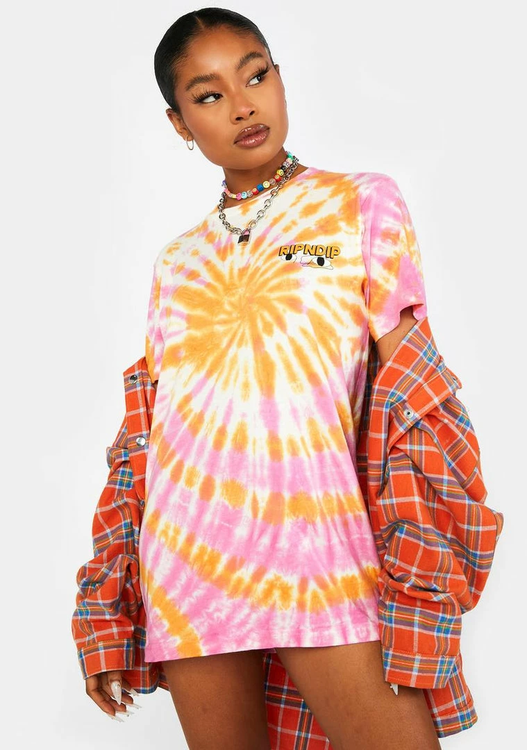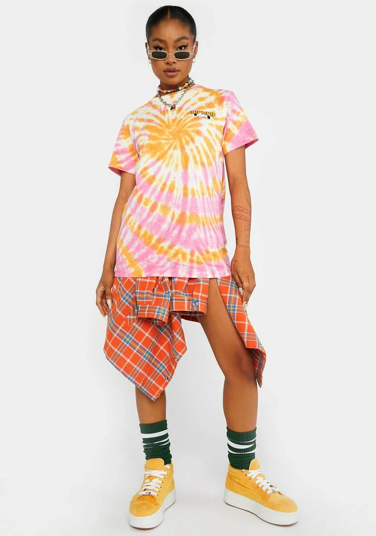 cuz you’re way “butter” than them. This tie dyed tee has short sleeves and a graphic print on the front and back.