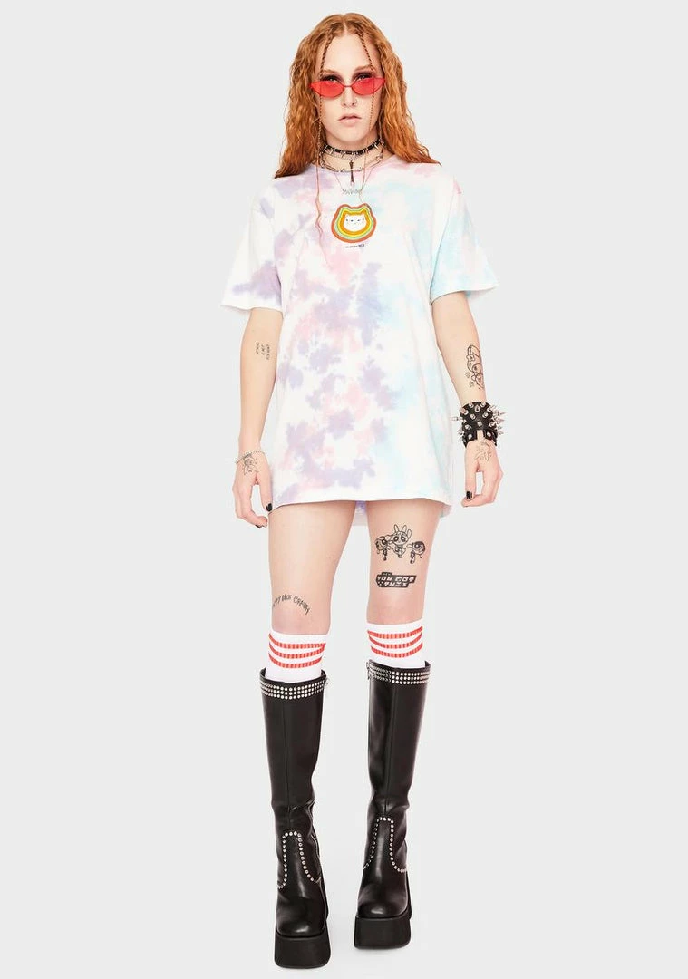 will open your mind to the endless possibilities. This trippy short sleeve, crewneck tee has a relaxed fit, a custom tie-dye print, and mindbending graphics on the front & back.