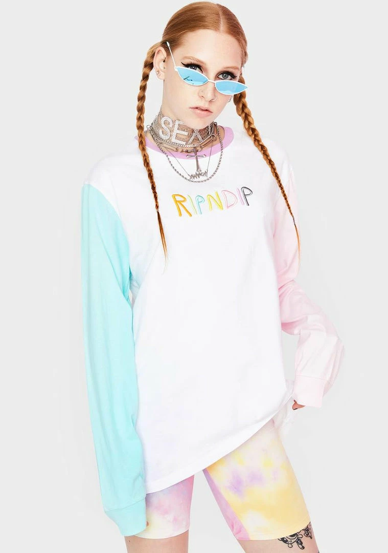 Deals 🔔 RIPNDIP Tops Embroidered Logo Long Sleeve Tee ❤️