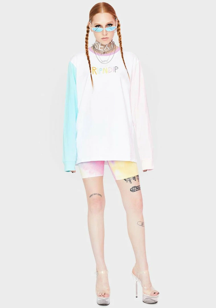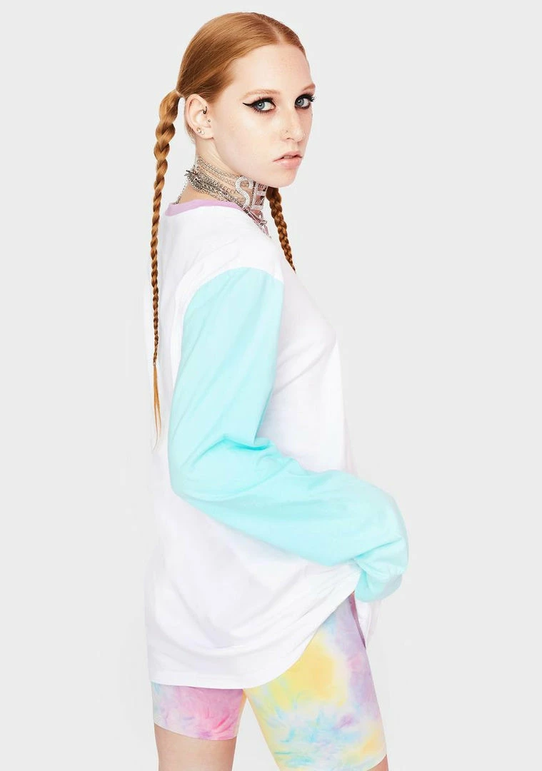 because a babygirlâs gotta do what a babygirlâs gotta do. This color block crew neck tee features different colored long sleeves and neckline and a brand logo embroidered across the chest.