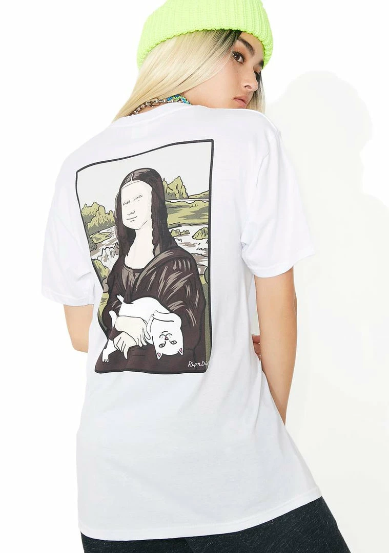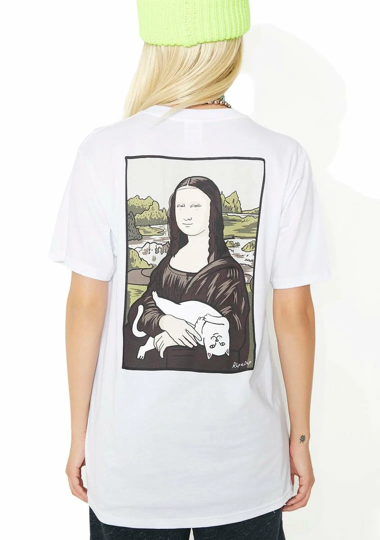 thatΓ’ΒΒs why the Mona Lisa was smiling, she had a chubby cat in her lap. Mystery solved! This sikk af tee features a supa soft cotton construction, back graphic of the Mona Lisa chillinΓ’ΒΒ with our pal Nermal, oversized fit and chest pocket.