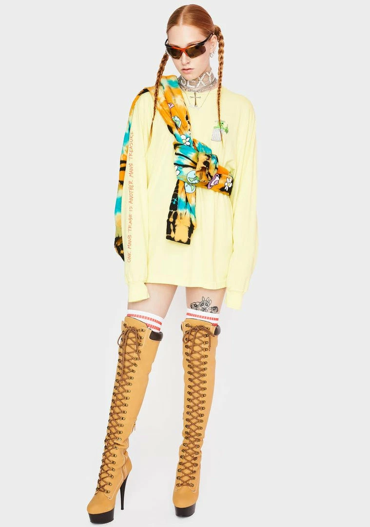 because youΓ’ΒΒre a diamond in the rough. Treasure this long sleeve crew neck tee with a screen printed graphic on the back, mini graphic on the chest, and a sassy motto on one arm.