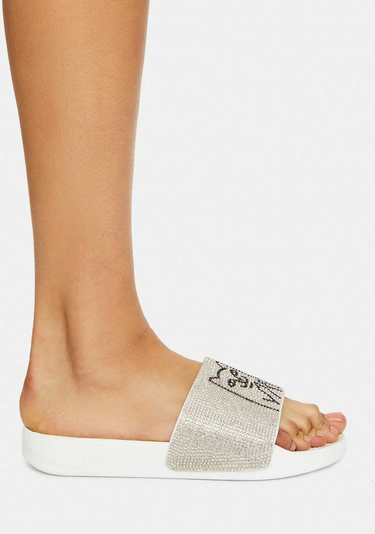 Best Pirce ๐ RIPNDIP White Rhinestone Lord Nermal Slides ๐